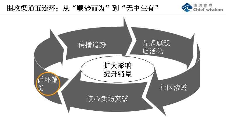 对于局部的机会型市场,我们建议可以采用“渠道围攻”战法。不是孤注一掷,而是采用多点进攻、围攻瓦解的战法,为产品找到落脚点。