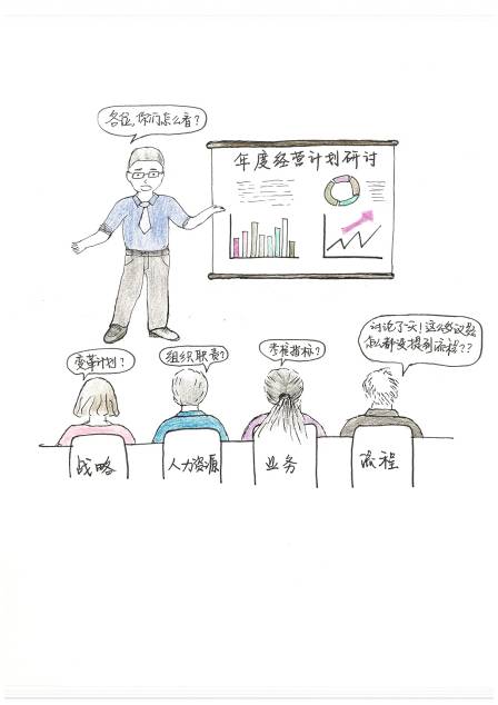 我经常参加客户企业经营分析会,图中的场景经常再现,也经常让我反思流程在企业经营中的定位、局限性,以及如何才能发挥应有的价值。