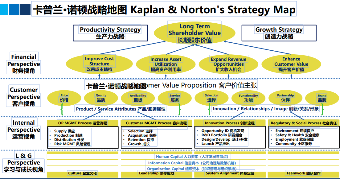 从图1-1卡普兰·诺顿战略地图可以看出,在价值链的四个视角中离不开员工的学习和成长,离不开富有创造力的组织和人才建设,这就意味着人力资源管理在战略制定中将扮演着至关重要的角色。