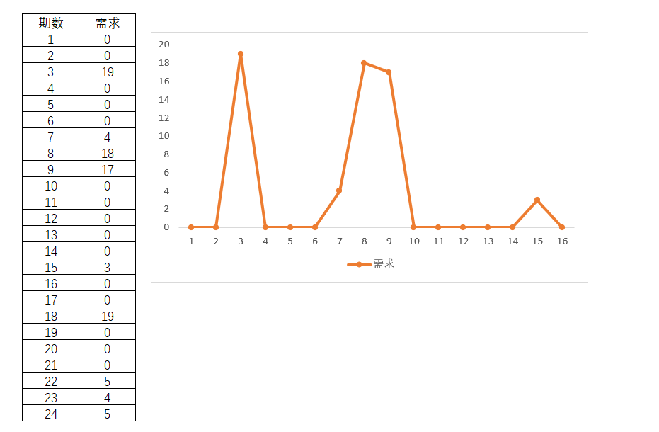 某部件的需求情况如下,不时地产生需求,但又不时的连续时期不产生任何需求。