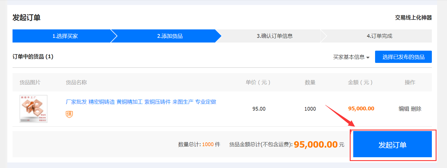 具体操作路径和方法如下:我的阿里——服务——卖家交易管理——发起订单。如图9-12所示。