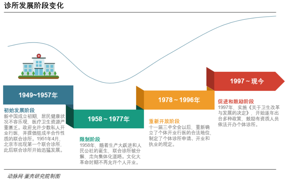 作为个体行医的主要承载机构和组织形式,诊所在我国的发展历程反映了我国医务人员自由执业的情况。随着宏观经济体制改革和政府对医疗卫生领域治理思路的变迁,我国个体诊所逐步在20世纪90年代开始发展。