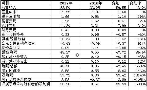 以方大炭素的利润表(表1-16)为例,可以看到哪些信息呢?在成本几乎不变的情况下,收入暴涨249%,那么自然营业利润及净利润大幅增长。这是很容易看到的信息,我们要去分析什么呢?