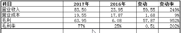 我们看方大炭素的毛利率,由2016年的25%增长至2017年的77%,这是公司收入暴涨的原因,如表1-17所示。为什么毛利率会暴涨?需要了解产业背后的逻辑。