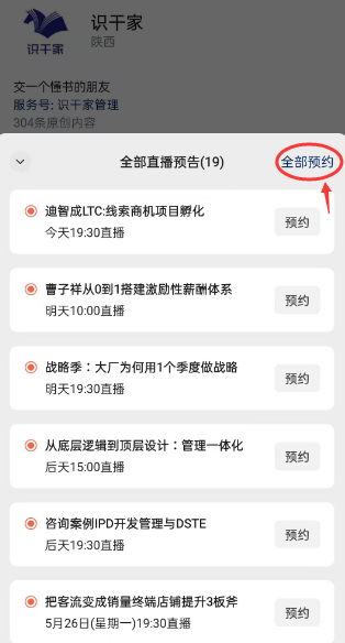 一键预约全部直播