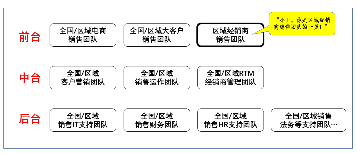 当然,快消品销售不仅仅只是你现在刚入职做的这些内容。广义而言,快消品销售有很多部门和岗位,我们所在的区域经销商销售团队只是一个分支而已,即使是我们这个分支在全国也有很多平行运作的大区、省区和城市销售团队。其实,一个正规完整的销售组织有很多岗位,大体如图1-3所示。