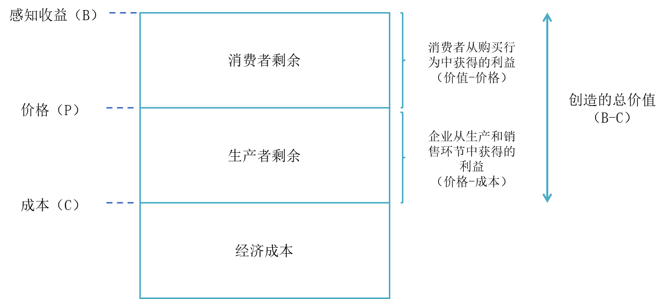 第一,上述定义中蕴含的价值创造观点与经济学的基本原理一致,价值是以感知收益(即消费者的支付意愿与经济成本之间的差额)来表示的。