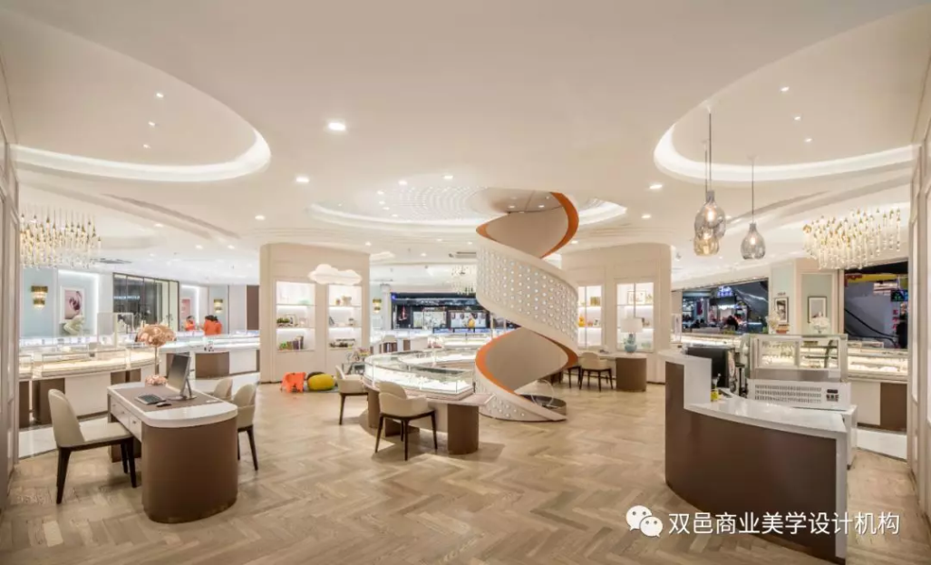 未来,珠宝新零售是用户关系经营,售卖一种生活方式。其商业空间将围绕顾客的休闲舒适性、珠宝专业体验性来展开,水吧、多功能活动场地、休闲区域是珠宝店的标配。