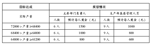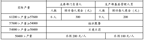 完成产量低于最低目标50400以下,主要部门责任人乐捐200元/人,生产部基层管理人员乐捐100元/人。