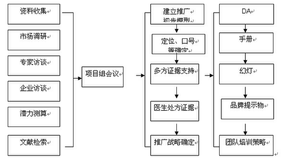 (4)产品的调研分析。调研项目可作为合规推广手段之一,分为市场容量调研、竞品调研与产品回顾性调研。这些调研工作是产品定位制作的基础,可以通过外包第三方公司或自建调研项目组来完成。调研沟通要充分利用推广及临床人员协助完成。