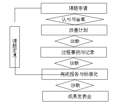 在课题改善的项目管理中,一般要遵循图3-6中的项目管理步骤。各个部门首先要对课题进行定义并履行课题申请责任,然后制订改善计划,对计划进行诊断。诊断就是辅导,主要是为了了解计划制作过程中是否存在问题、有无好的事例等。获得很好的效果时,要再次对结果进行诊断,然后完成报告和标准化工作,最后发布成果。