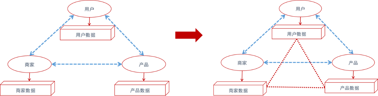 举个例子,早期的电商业务,从业务线上化入手,将用户选择产品、订购产品的过程从实体店转化成了线上,实现了业务层面的信息记录和沉淀。但此时,并没有真正实现深度“连接”,因为该过程只是“消灭”了物理世界中挑选产品的过程,并没有通过数据来影响用户购买行为或增加用户粘性。