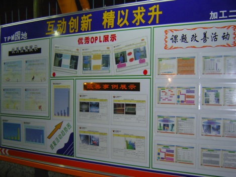在这个园地里,可以对企业方针、部门方针、改善活动体系、改善活动计划及改善活动成果等进行系统的描述,使之成为企业或部门对外(来访者等)宣传的窗口。