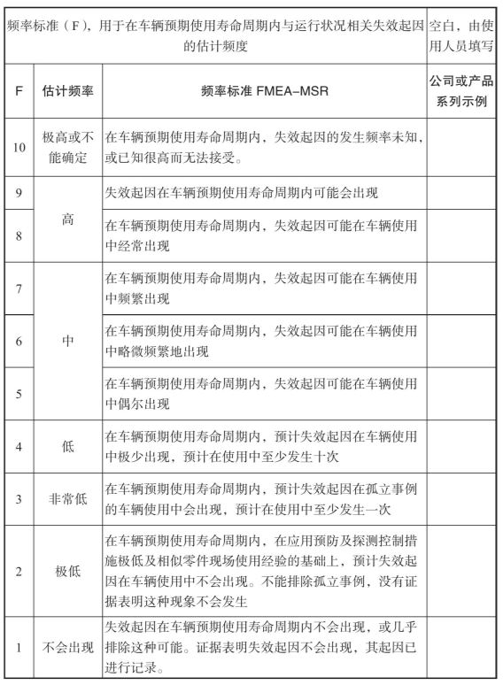 理由记录在FMEA-MSR表格的“频率评级理由”列中。