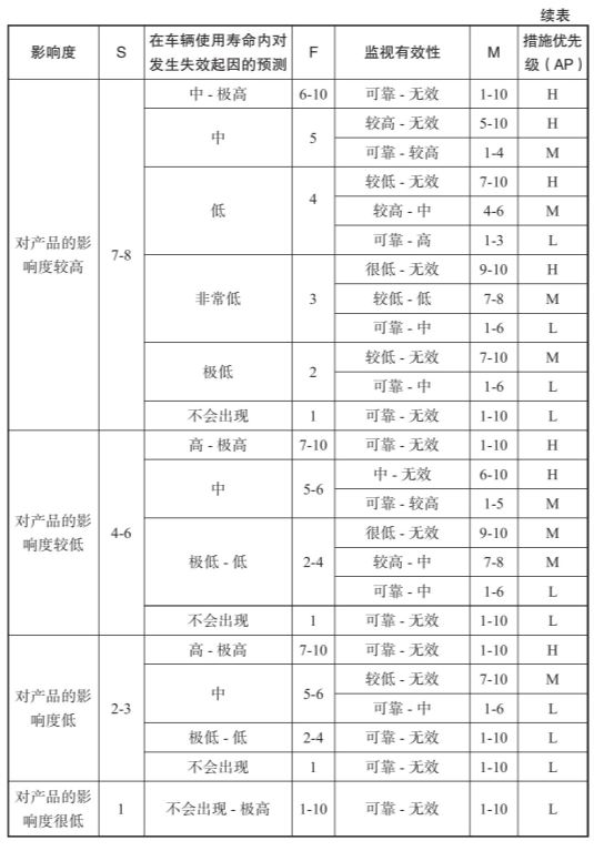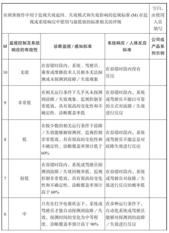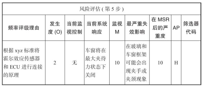 风险分析包括严重度S,指感应及响应模块失效导致的后果。F指感应和响应模块失效的频率,不是指基础产品故障频率,比如车窗的马达、玻璃等。M监视有效性,监视有效性越好,分值越低。
