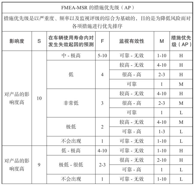 表5-7 FMEA-MSR的AP措施优先级的评分标准
