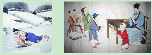 图2-6 王祥卧冰(左)与孔融让梨(右)