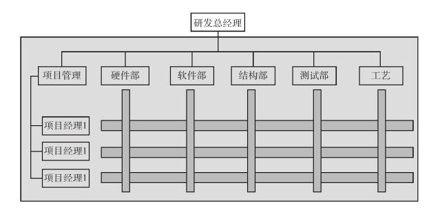 (2)强矩阵的特点是项目经理关注整个产品开发过程,对项目的人、财、物有绝对的领导权,项目成员代表职能部门对项目进行承诺,绝大多数企业的项目经理均由资深的工程师兼任,如图2-2所示。