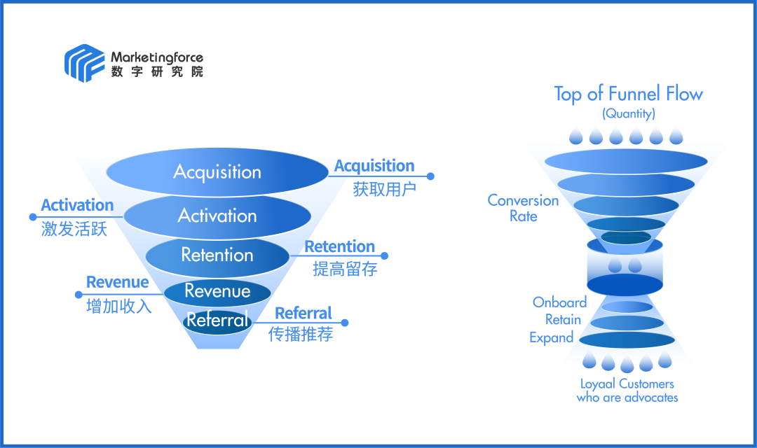 这里给大家看两个模型,如图4-4所示,模型1是常见的获取-激发-留存-收入-推荐(AARRR)的漏斗模型,每往下一个漏斗,客户数量是递减的。而模型2才是更先进的漏斗模型,它的魅力在于通过增购、复购,让企业的后续收入甚至可以超过首次签单收入!驱动后续增长的引擎就是客户成功。