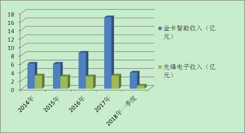 图9-3 金卡智能与先锋电子收入比较图