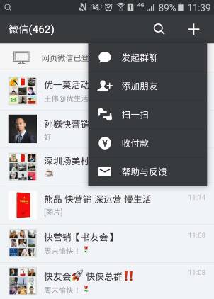 步骤1:点击右上角“+”选取“发起群聊”,首先要至少3人组建一个群组。