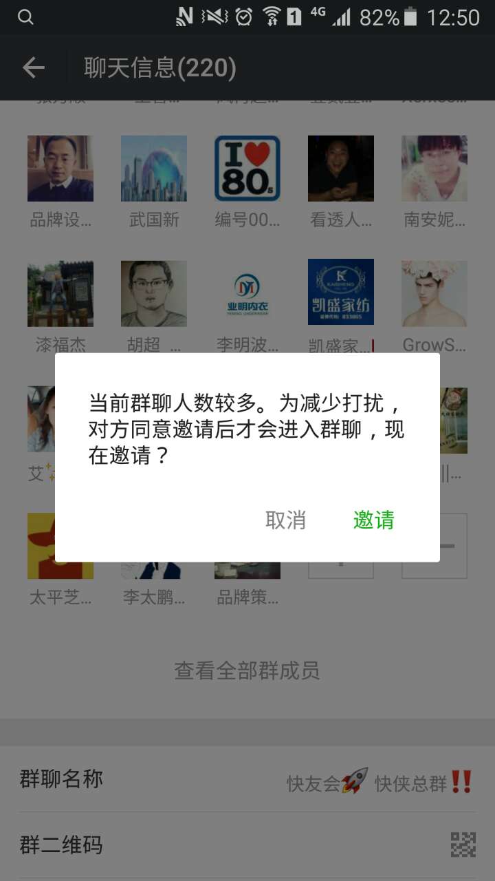步骤9:发送邀请链接给邀请方,提示对方同意后将会进入群聊。