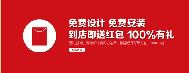 (1)活动标题要吸引人眼球。我们设计的元旦优惠活动的标语为:免费设计,免费安装,到店即送红包,100%有礼。
