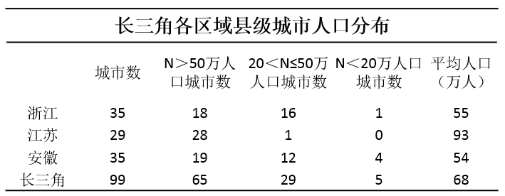 长三角县及县级市共有99个,其中县级市(含三个区)43个,县56个;长三角50万人口以上规模的县级城市共有65个,占比高达66%。