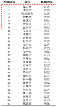 长三角县域经济发达,2017年全国百强县中,长三角县级市共有29个入选,且十强中有7个入选。百强中浙江有13个,江苏有15个,安徽1个。
