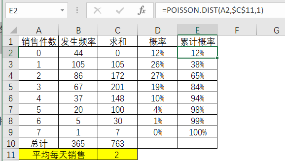 如果代入以下泊松分布的公式来计算:,公式中的X就是每日销售件数,也就是变量。