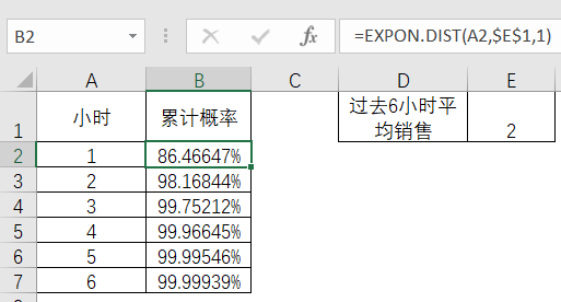 EXCEL的函数expon.dist(根据EXCEL版本可能有所不同)可以有效地快速计算出其累计概率。