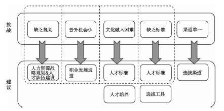 如前所述,目前中小银行在人力资源选拔配置体系上存在缺乏标准、缺乏规划、文化融入困难、晋升机会狭窄、渠道单一等问题。上述问题可通过人力资源战略规划、人才队伍建设部分解决,即需要开放职业生涯发展通道、建立人才标准并开发相应的人才评价工具。对于外来引进人员文化融入困难的问题一方面可以通过人才标准在引进环节进行文化匹配度的筛查,另一方面可以通过系统的人才培养与发展体系进行弥补。