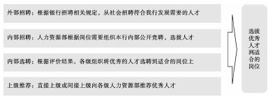 内部人才选拔包括内部招聘、内部选聘、上级推荐等。中小银行应鼓励员工在本序列内部、相关序列之间进行职位调动,以及在总部、分支机构之间转换岗位,这有助于拓宽员工发展渠道、保留优秀员工、培养复合型人才、降低招聘成本。内部人才选拔的出发点在于建立公开、平等、竞争、择优的选人用人机制,切实加强管理干部建设,给广大员工提供广阔的发展空间。