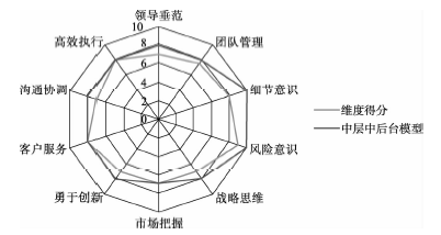 管理能力综合指数即各项管理维度的总分,和团队相比,××银行的管理能力处于中等偏下水平。如图9-25所示。
