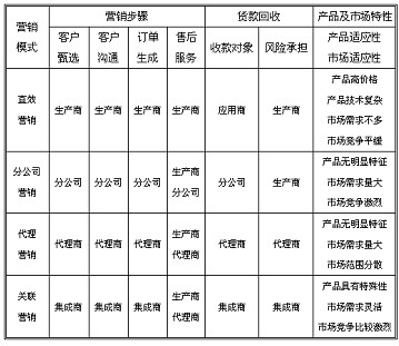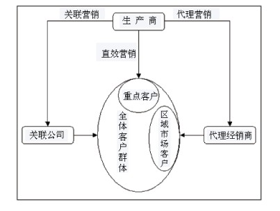(1)根据产品消费对象的不同,采取有针对性的营销模式,生产企业与关联公司和代理经销商组成一个高效的营销网络;