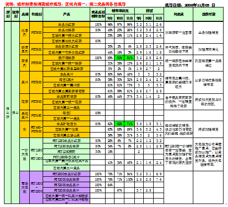1)区域接触:呈报的资料是市场调查汇总表和各主要竞品的市场价格调查表。