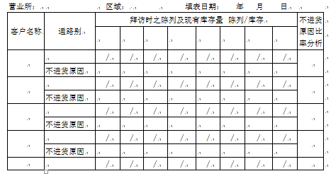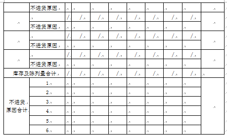 表号:R-01 10-255-1A 制表人: 备注:不进货原因代号:1.库存原因;2.价格原因;3.人为因素;4.市场特殊状况;5.产品流通不佳;6其他说明原因