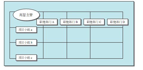 如图8-11所示,矩阵型组织结构是把按职能划分的部门和按产品(或项目、服务等)划分的部门结合起来组成一个矩阵,是同一名员工既同原职能部门保持组织与业务上的联系,又参加产品或项目小组的工作。为了保证完成一定的管理目标,每个项目小组都设负责人,在组织的最高主管直接领导下进行工作。