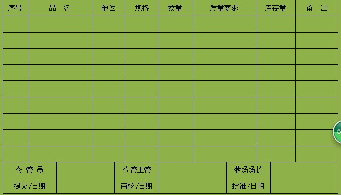 表4-1饲料申购单