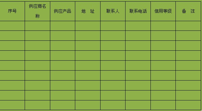 a.供应商资料:包括名称、地址、联系人、联系方式。