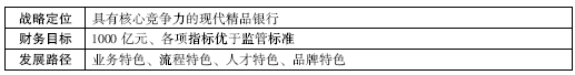精品银行是指中小银行所要达成的战略目标,以建立资产规模千亿、各项指标优于监管指标、良好的经营体制和高效的运行机制为前提,以经营创新、产品创新、服务创新为手段,以实现管理质量、资产质量、经营效益的不断提高为根本目的,采用集约化的经营方式,科学有效地配置全行各种经营资源,培育管理优势、服务优势、质量优势、产品优势、品牌优势的一种发展战略。