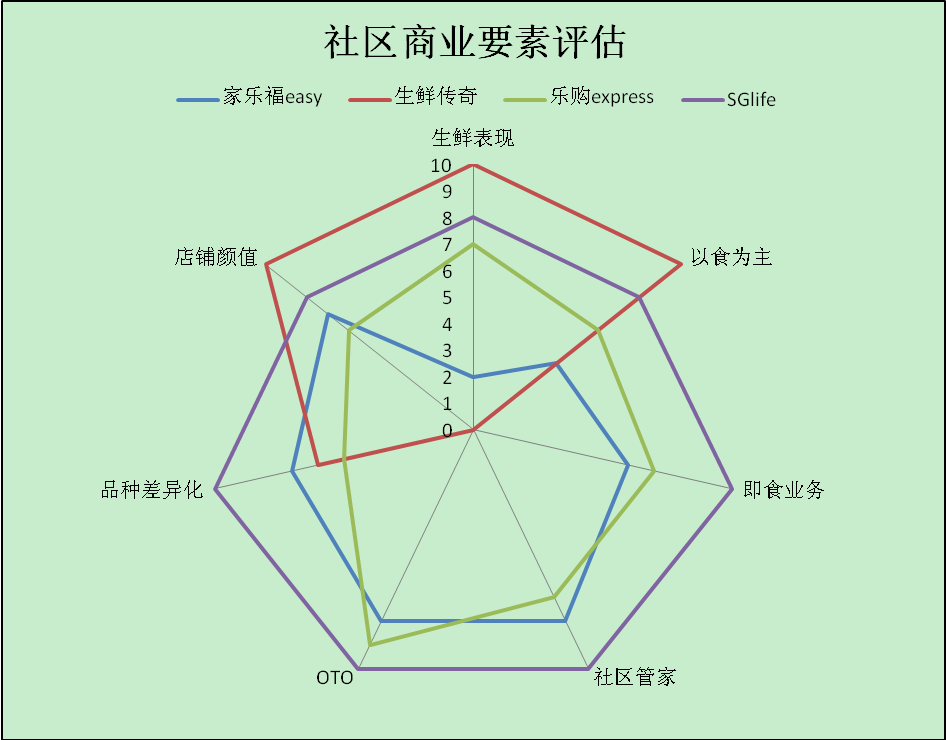 我们再次梳理一下新近具有一定热度的社区小店,家乐福EASY、乐城生鲜传奇、乐购EXPRESS和苏果第三代生活超市SGlife,探寻社区商业的脉络。