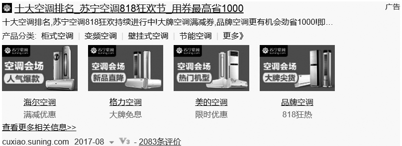 到此,我们把百度搜索推广的【创意】讲完了。会有读者问:“为什么我看到有些企业的广告内容丰富?”如图3-42所示。