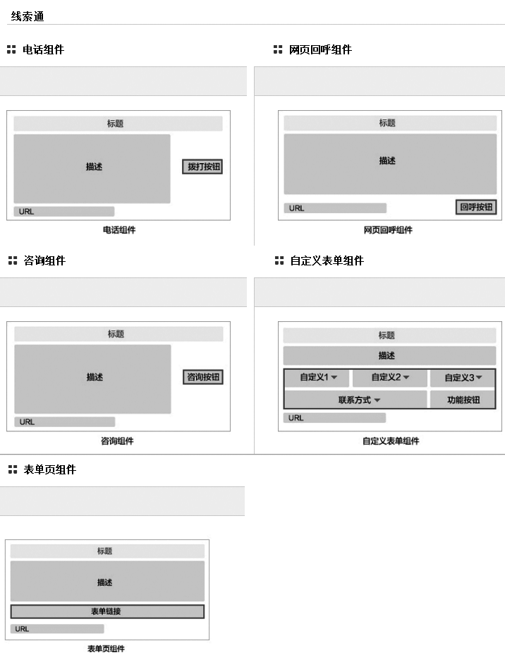 这是使用了百度搜索推广创意里的【组件】功能——【线索通】,共有五种组件,如图3-49所示。