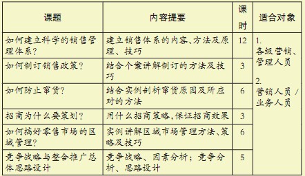 在所有的培训项目中,有关渠道管理的培训内容参考如下: