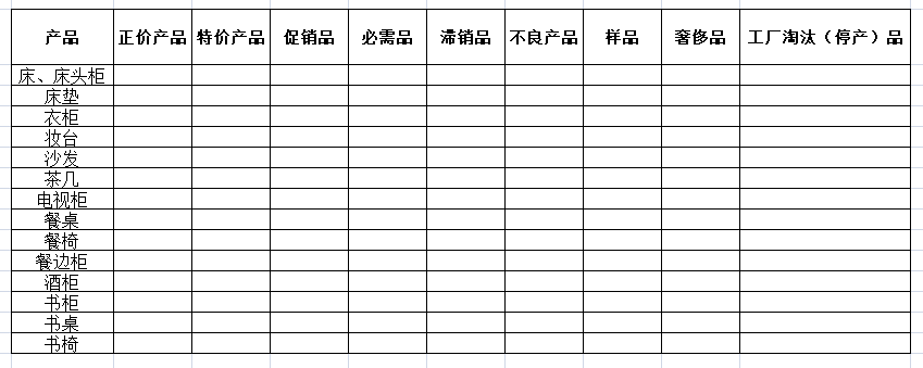 建议大家根据自己门店不同的产品属性,采用灵活的产品标价方式,而不是所有的产品都是出厂价乘以统一的系数。应从利于销售、竞争和利润的角度去区别对待门店内的每一款产品。在这里我给大家设计了一个表格,便于大家在标价中使用,如表3-4所示。