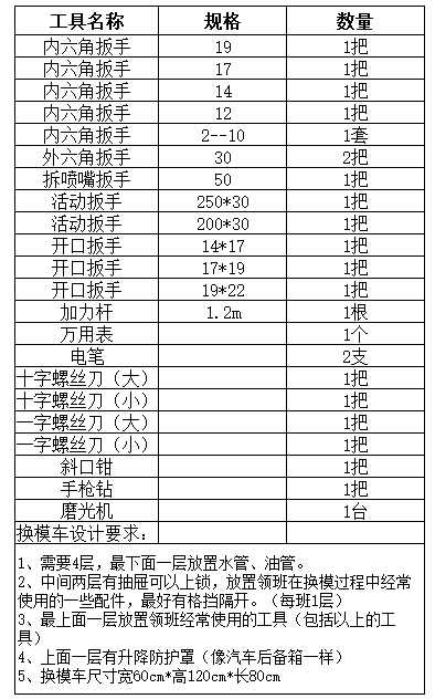 动作二 | 设备在换模的时候,事先做出计划表,让机修进行协助 | |