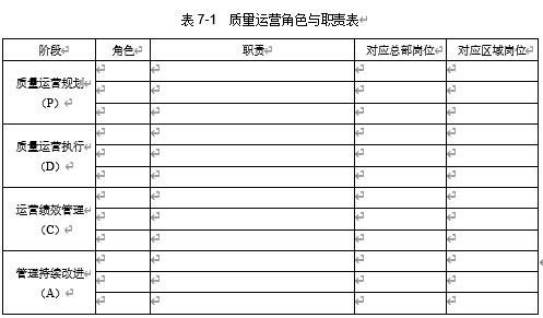 质量运营诉求的收集、质量运营目标的制定都需要有相应的组织、人员及运作规则支撑。在推动质量运营管理的时候,需要根据企业的实际情况定义好对应的角色、职责与岗位匹配表,模板如表 7-1 所示。