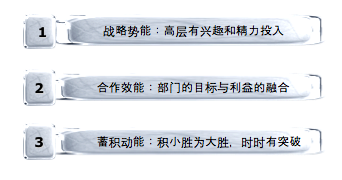 2、业务展开过程中,各部门的目标与利益冲突少于融合