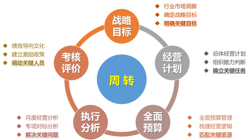 通过对国内外标杆企业经营发展的总结,我们建立了一个“从战略到执行”的框架,分别是:战略规划、经营计划、全面预算、执行分析、考核评价(见图3-1)。